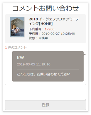 • お客様からご予約お申込み頂いてから行われる入金案内などのご連絡はコメントで行われます。