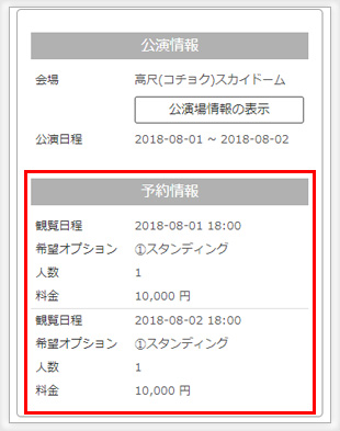 1. 現地受領の場合 1-1. 1つの予約番号で2公演以上ご予約の場合